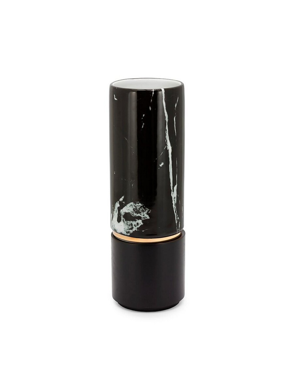 Ceramic vase bicoloured with marble pattern on the upper part.
