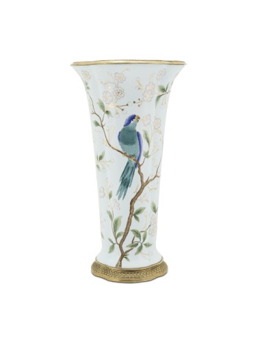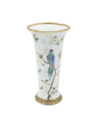Porcelain vase with hand painted decor and bronze details.