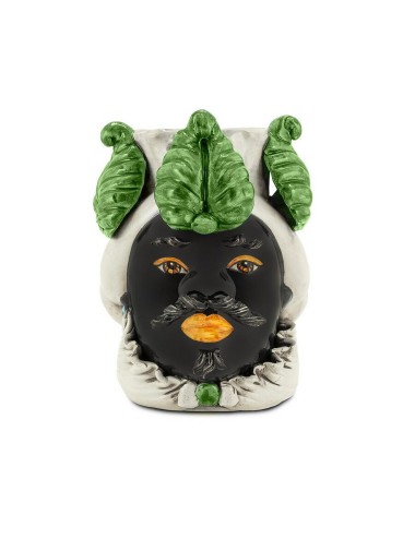 Sicilian traditional moor-head shaped ceramic vase, totally hand made and hand painted by the original artisanal producer from Caltagirone - Sicily, restyled and exclusively distributed by Abhika.