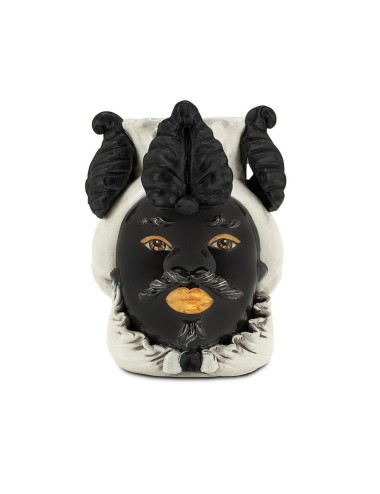 Sicilian traditional moor-head shaped ceramic vase, totally hand made and hand painted by the original artisanal producer from Caltagirone - Sicily, restyled and exclusively distributed by Abhika.