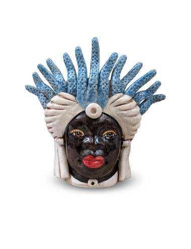 Sicilian traditional moor-head shaped ceramic vase, totally hand made and hand painted by the original artisanal producer from Caltagirone - Sicily, restyled and exclusively distributed by Abhika.