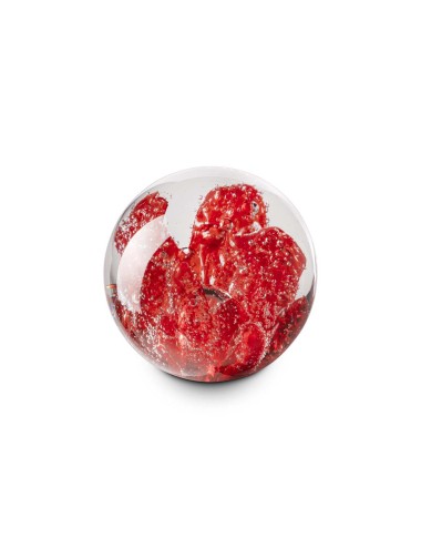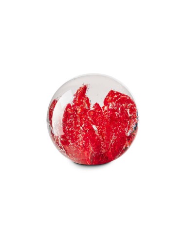 Glass ball with colorful inclusions.
