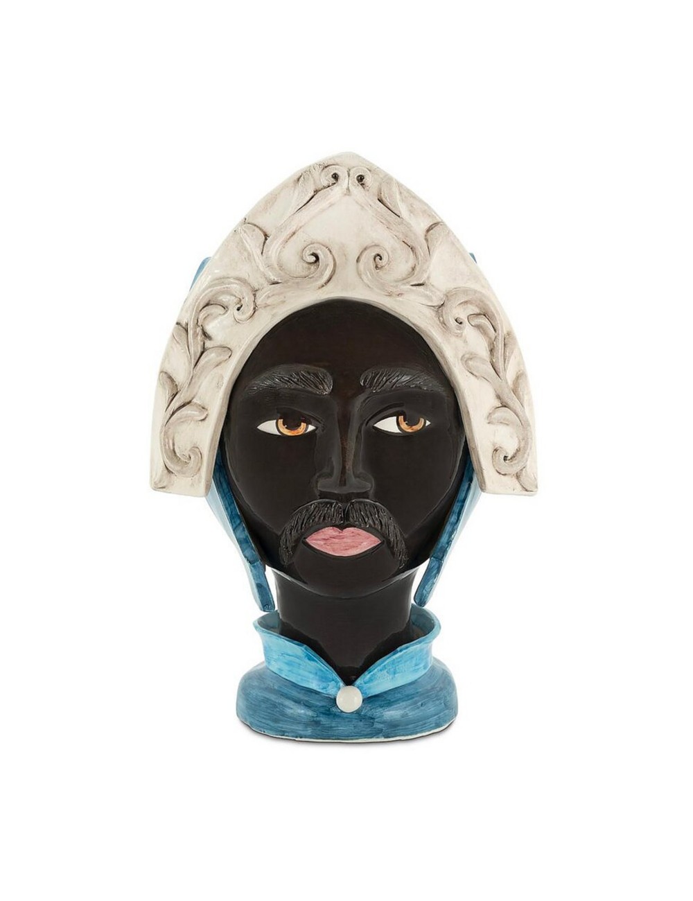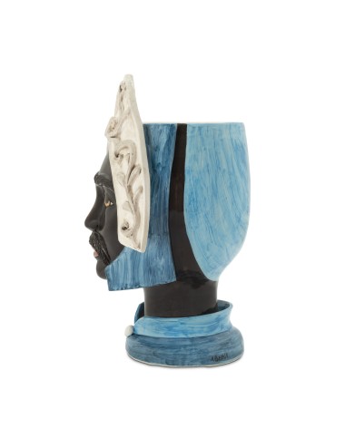 Sicilian traditional moor-head shaped ceramic vase, totally hand made and hand painted by the original artisanal producer from Caltagirone - Sicily, restyled and exclusively distributed by Abhika.