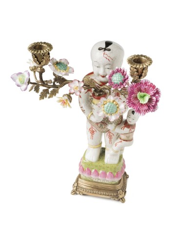 Traditional candleholder with metal and ceramic handcrafted decorations.