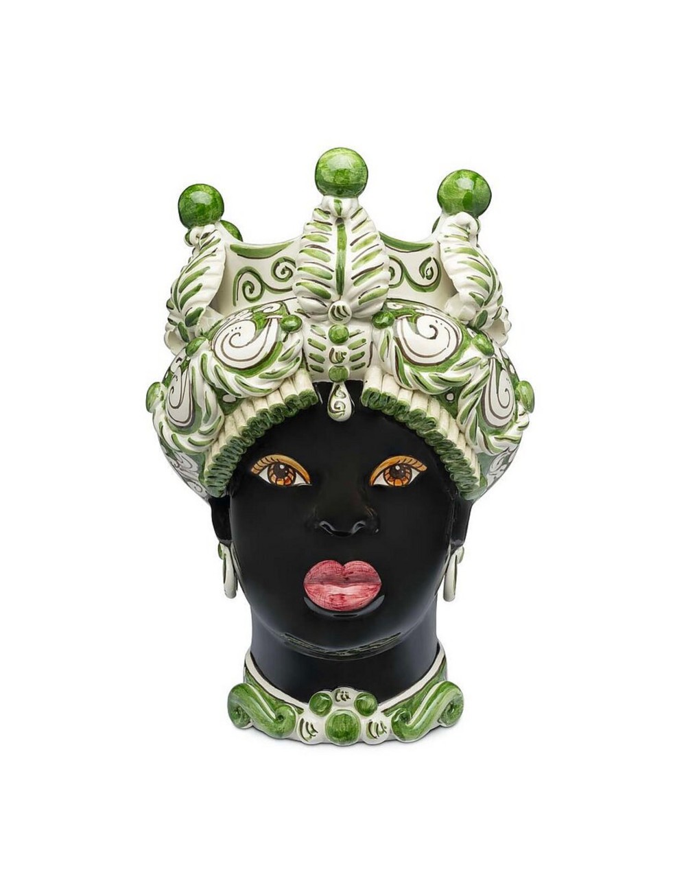 Sicilian traditional moor-head shaped ceramic vase, totally hand made and hand painted by the original artisanal producer from caltagirone - sicily, restyled and exclusively distributed by abhika
