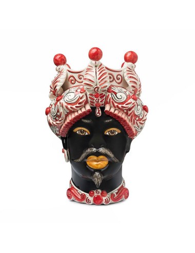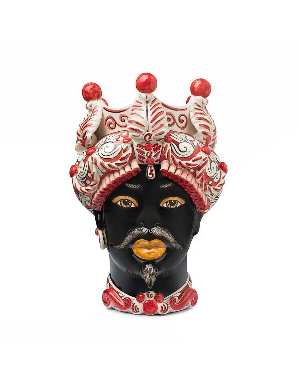 Sicilian traditional moor-head shaped ceramic vase, totally hand made and hand painted by the original artisanal producer from caltagirone - sicily, restyled and exclusively distributed by abhika