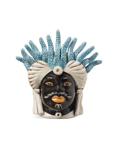 Sicilian traditional moor-head shaped ceramic vase, totally hand made and hand painted by the original artisanal producer from Caltagirone - Sicily, restyled and exclusively distributed by Abhika.