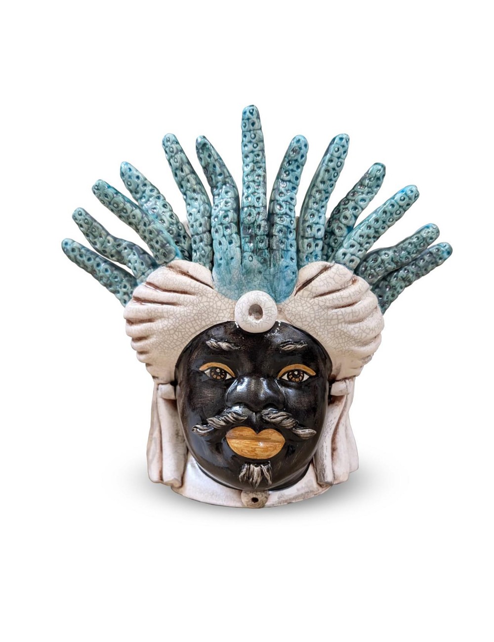 Sicilian traditional moor-head shaped ceramic vase, totally hand made and hand painted by the original artisanal producer from Caltagirone - Sicily, restyled and exclusively distributed by Abhika.