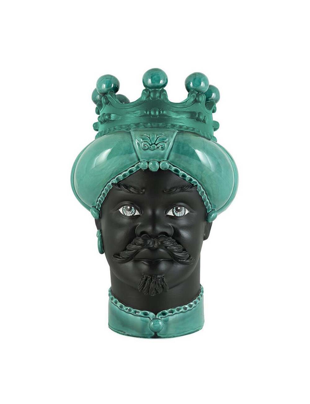 Sicilian traditional moor-head shaped ceramic vase, totally hand made and hand painted by the original artisanal producer from Caltagirone - Sicily, restyled and exclusively distributed by Abhika.