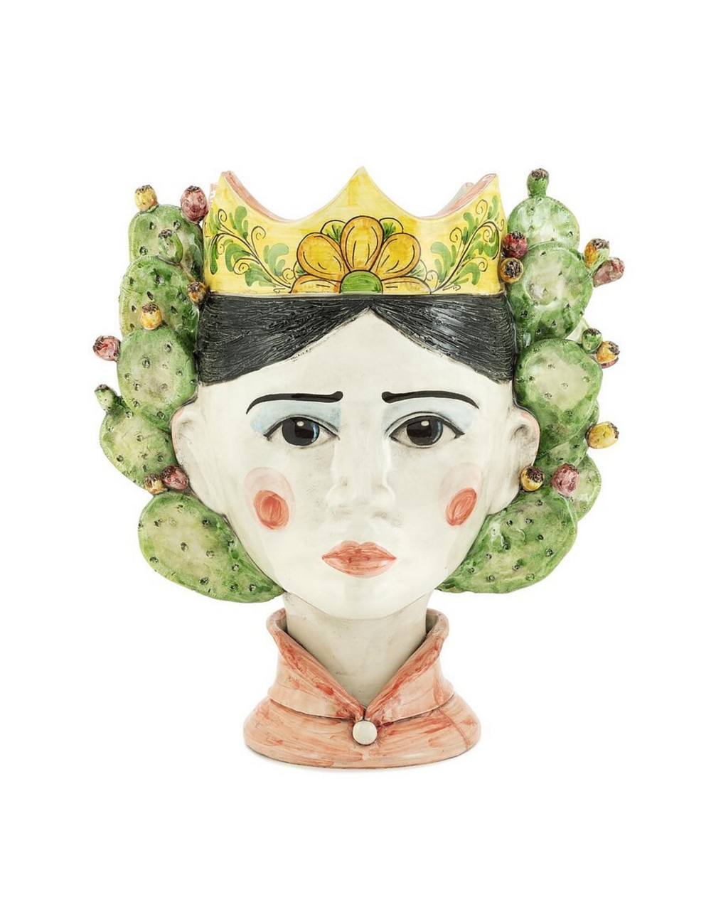 Exclusive Abhika production head-shaped vase, modeled by hand in the minimum details, all decorations are applied and hand painted making each piece unique.