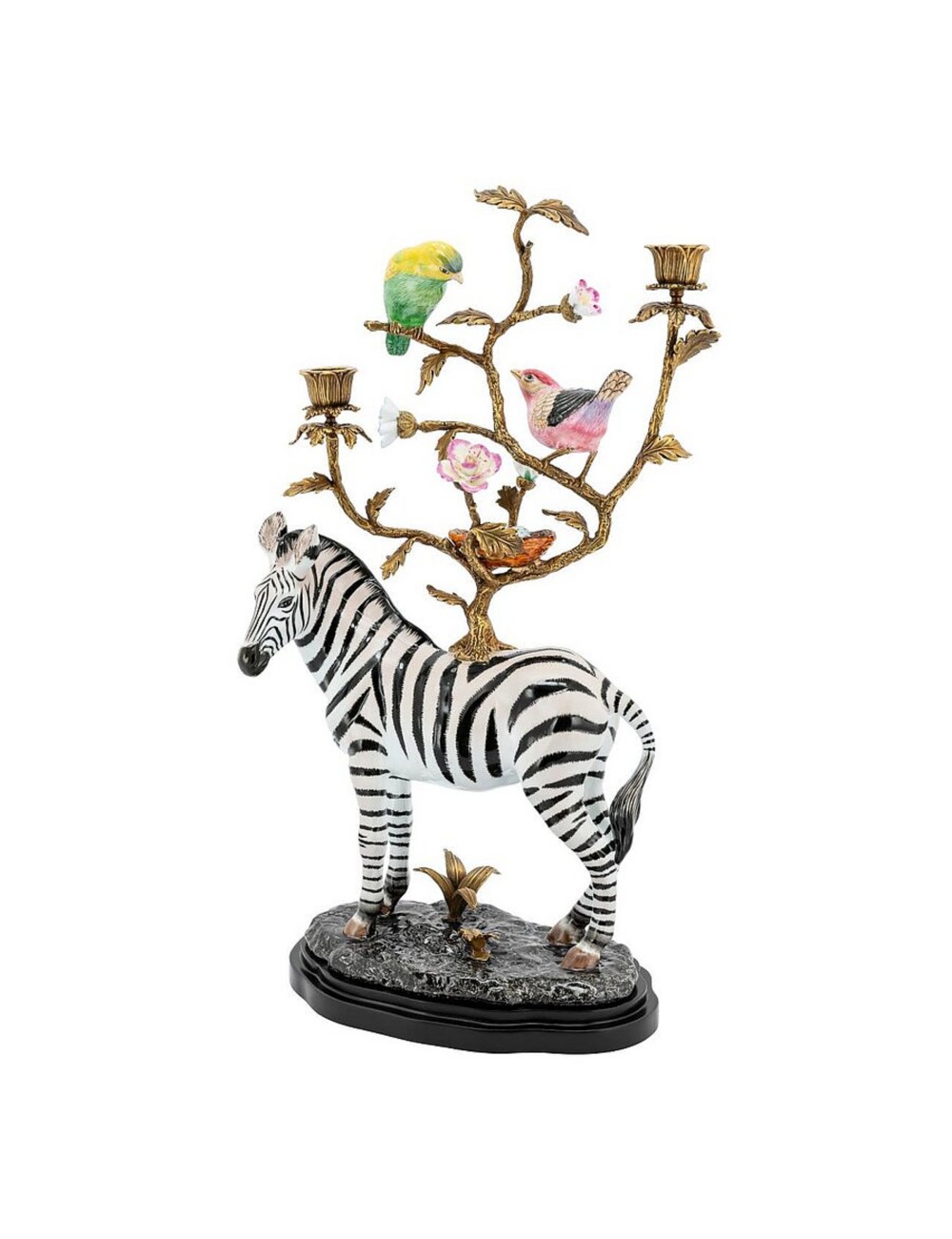Original zebra sculpture in porcelain with brass candle holder, all decorations are handmade.