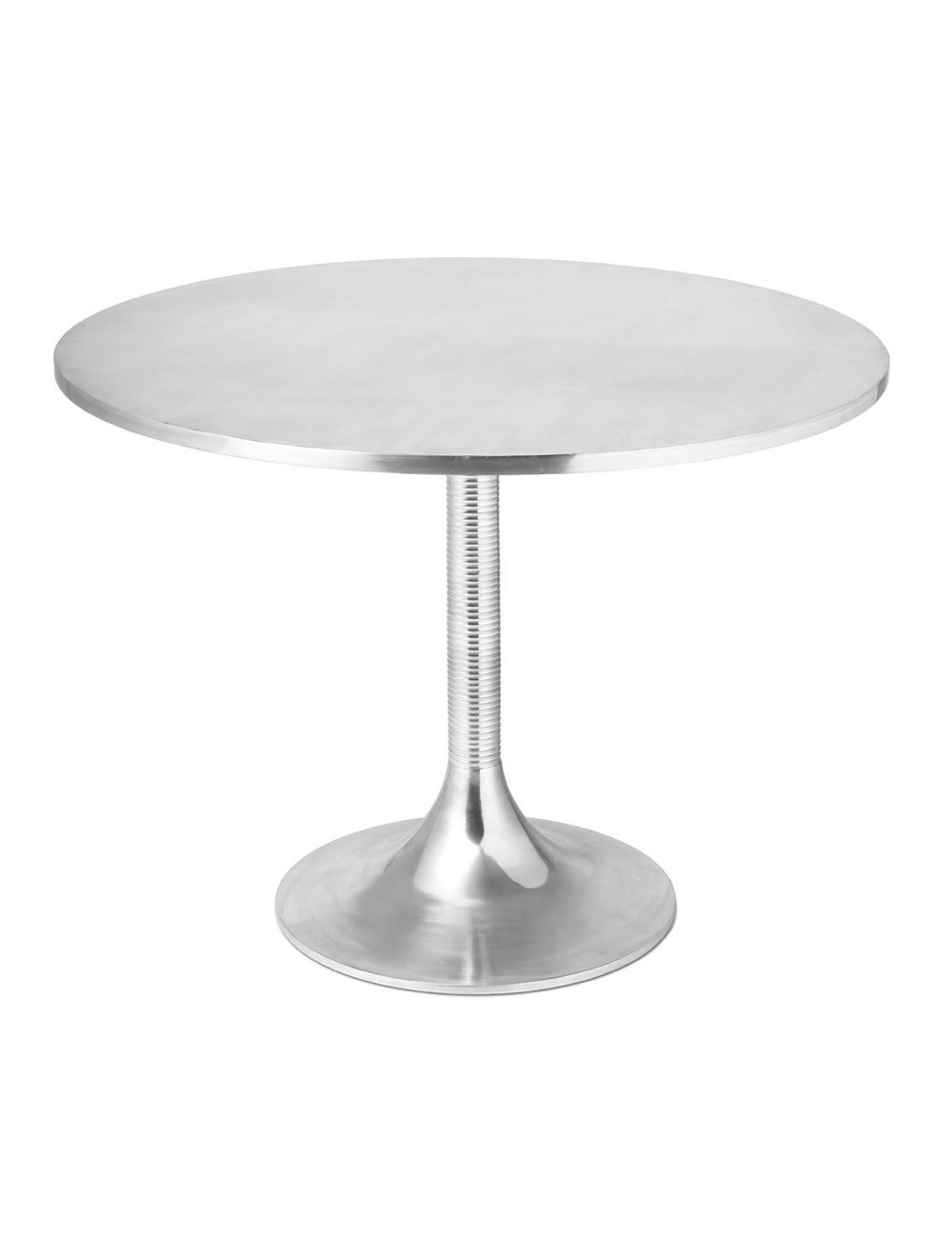 Golden aluminum dining table with smooth top.