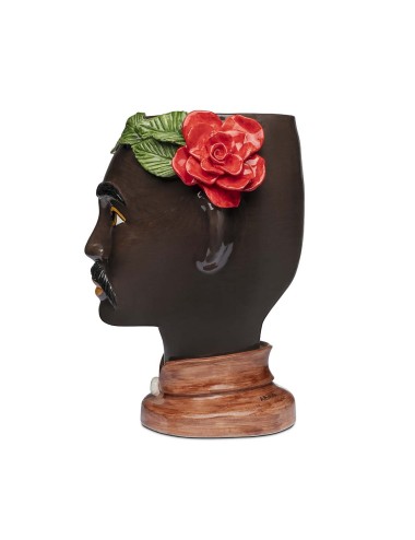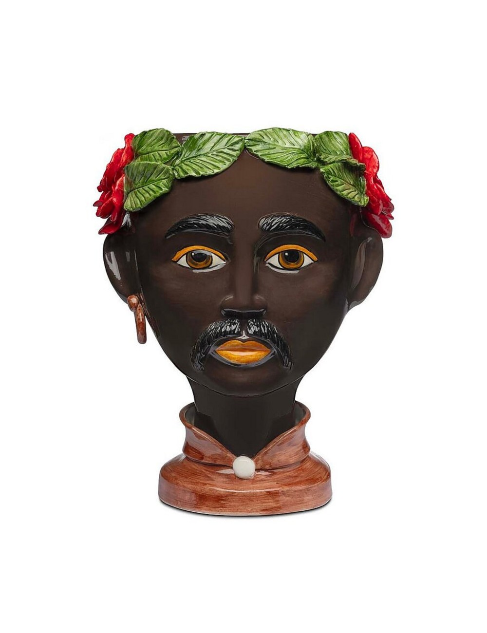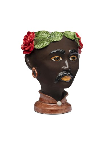 Sicilian traditional moor-head shaped ceramic vase, totally hand made and hand painted by the original artisanal producer from Caltagirone - Sicily, restyled and exclusively distributed by Abhika.