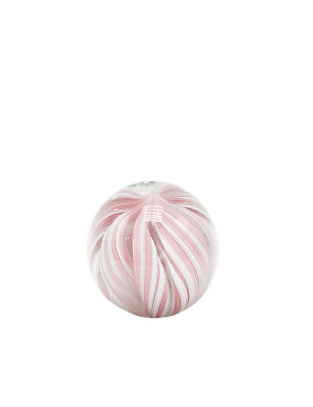 Glass ball with colorful inclusions.
