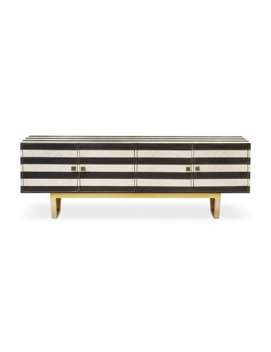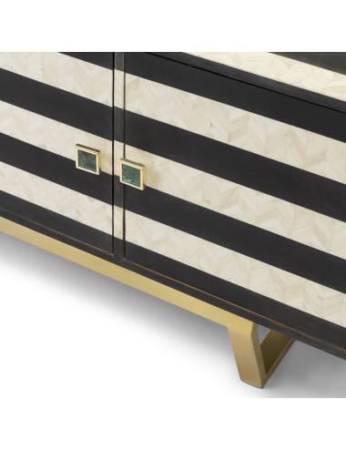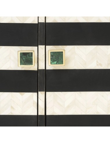 Wooden sideboard covered in bone tassels, satin metal base, malachite knobs.