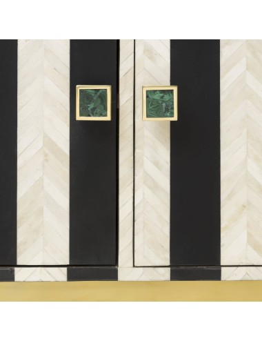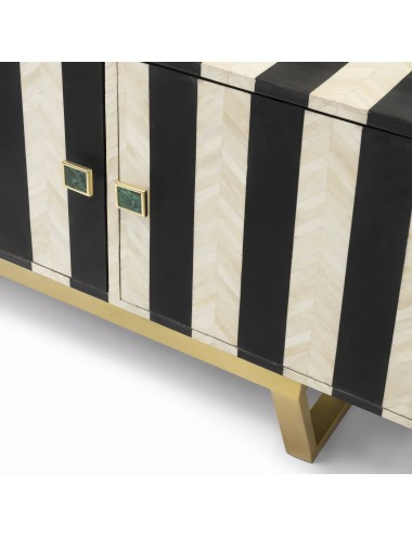 Wooden sideboard covered in bone tassels, satin metal base, malachite knobs.