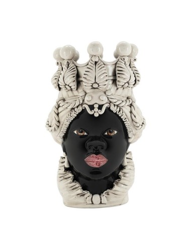 Sicilian traditional moor-head shaped ceramic vase, totally hand made and hand painted by the original artisanal producer from Caltagirone - Sicily, restyled and exclusively distributed by Abhika.