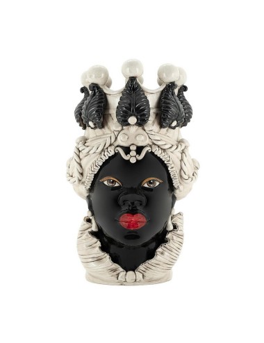 Sicilian traditional moor-head shaped ceramic vase, totally hand made and hand painted by the original artisanal producer from Caltagirone - Sicily, restyled and exclusively distributed by Abhika.