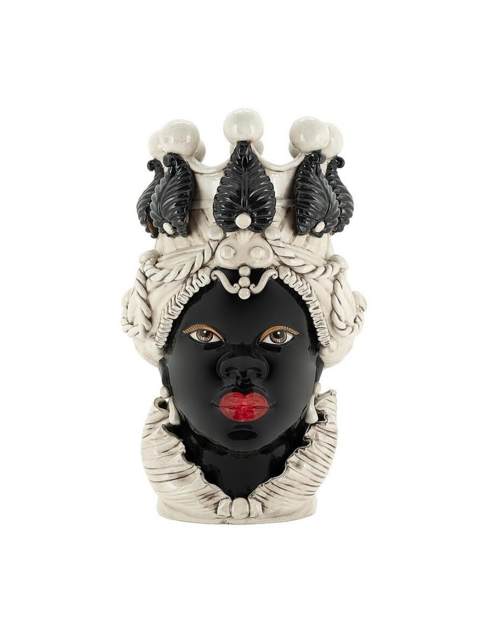 Sicilian traditional moor-head shaped ceramic vase, totally hand made and hand painted by the original artisanal producer from Caltagirone - Sicily, restyled and exclusively distributed by Abhika. © Registered model protected under copyright.