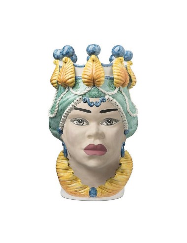 Sicilian traditional moor-head shaped ceramic vase, totally hand made and hand painted by the original artisanal producer from Caltagirone - Sicily, restyled and exclusively distributed by Abhika.