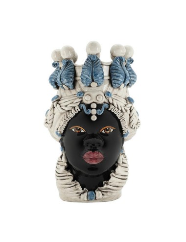 Sicilian traditional moor-head shaped ceramic vase, totally hand made and hand painted by the original artisanal producer from Caltagirone - Sicily, restyled and exclusively distributed by Abhika.